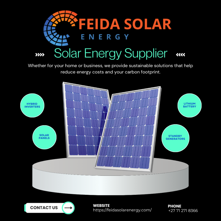 At Feida Solar Energy, our mission is to empower homes and businesses across South Africa with reliable, efficient, and sustainable energy solutions. We are dedicated to providing high-quality inverters, batteries, solar panels, and generators that help our clients reduce energy costs, achieve energy independence, and contribute to a greener future.